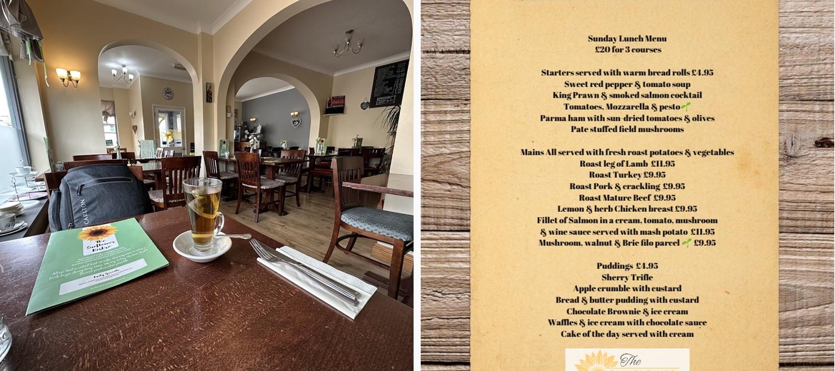 Discover The Sunflower Bistro in Westcliff-on-Sea, where we serve delightful breakfasts, charming afternoon teas, and hearty Sunday roasts. Enjoy a cozy atmosphere, excellent value, and a menu featuring vegetarian options. Perfect for festive gatherings or catering needs. Visit us today!